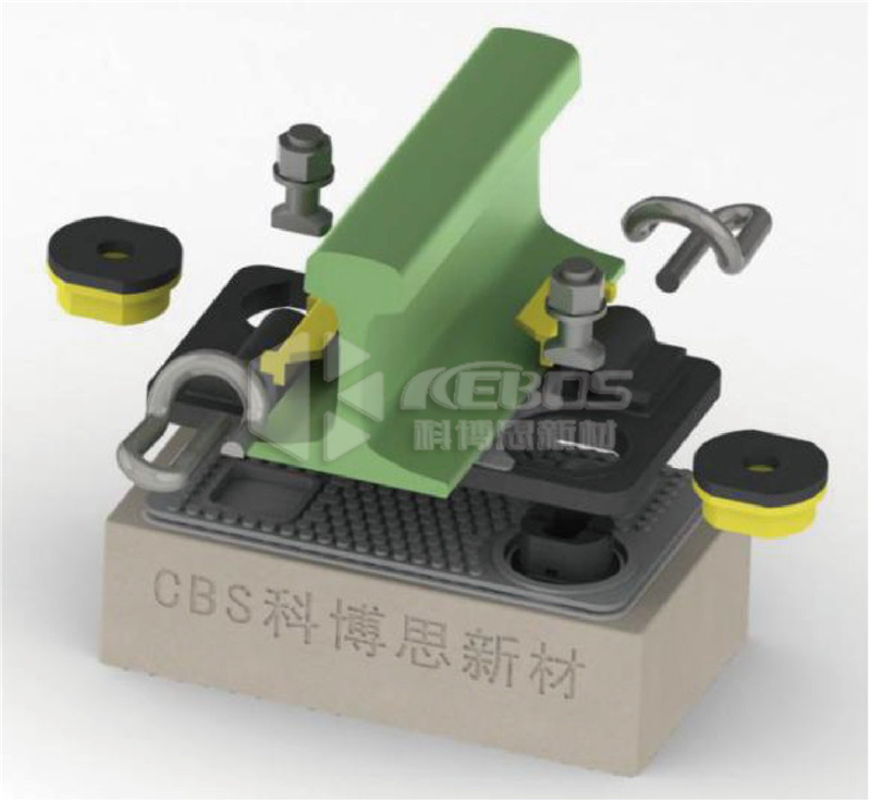 預(yù)埋式雙層非線性減振扣件主要由預(yù)埋鐵座、中間橡膠墊板、鐵墊板、軌下橡膠墊板以及彈條系統(tǒng)等組 成,屬于中等減振扣件范疇,具有優(yōu)異的動(dòng)態(tài)減振性能,相較于普通彈性分開(kāi)式扣件減振達(dá)8dB以上, 可廣泛地應(yīng)用于城市軌道交通線路中。